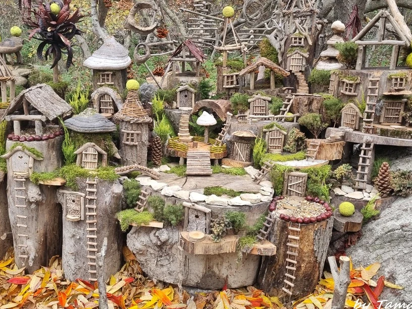 „Miután megkaptam az engedélyt, el is kezdtem az építést. Sok mindent meg tudtam menteni tavalyról – a kis házakat, ajtókat, ablakokat –, de így is rengeteg új elemet készítettem. Jó két hétbe telt, mire elkészültem. Minden természetes anyagból van, amit az erdőben vagy a környéken gyűjtöttem. Az idei verzió a tavalyinak a duplája lett, tíz métert biztosan elér.”