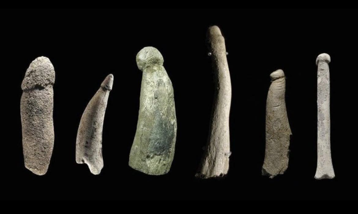 Az első szexuális segédeszközök meglepően nagyon régre, egészen az őskorig vezethetők vissza. A régészek több olyan tárgyat találtak, amelyek nagy valószínűséggel rituális vagy szexuális célra készült eszközök voltak. Az egyik legismertebb lelet a németországi Hohle Fels-barlangból került elő. Korát kábé 28 000 évre becsülik, anyaga pedig csiszolt kő (sziltkő), hossza nagyjából 20 centiméter. A kutatók