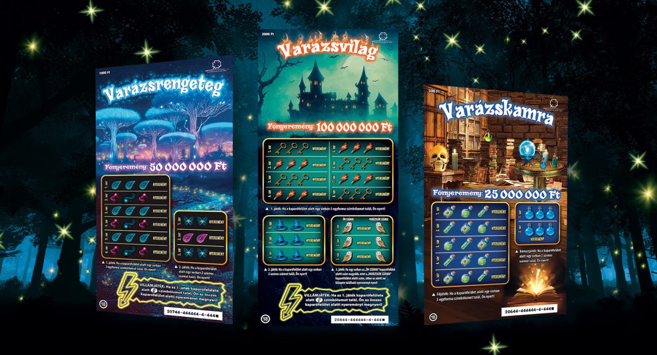 A farsangi időszakhoz kapcsolódva jelenik meg 2026 első háromtagú kaparós sorsjegycsaládja, amely a Varázskamra, a Varázsrengeteg és a Varázsvilág nevet viseli. Az új sorsjegyek mágikus tematikájú megjelenéssel, egyszerű játékmenettel és több tízmillió forintos főnyereményekkel kerülnek forgalomba. Három új kaparós sorsjegy, kedvező nyerési eséllyel A Szerencsejáték Zrt. tájékoztatása szerint a február 6-án debütáló sorsjegycsalád három árkategóriában