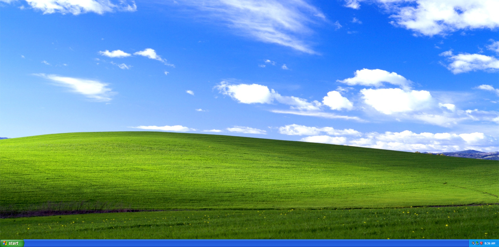 Ez a békés, élénkzöld domboldal és a felhős, tiszta kék égbolt alkotta látvány az 1990-es évek közepén készült, és eredetileg Bucolic Green Hills („bucolicus zöld dombok”) címet viselte. A fotót Charles O’Rear nevű fotós készítette januárban, amikor éppen a dél-kaliforniai Sonoma megyében autózott, úton a barátnője meglátogatására.